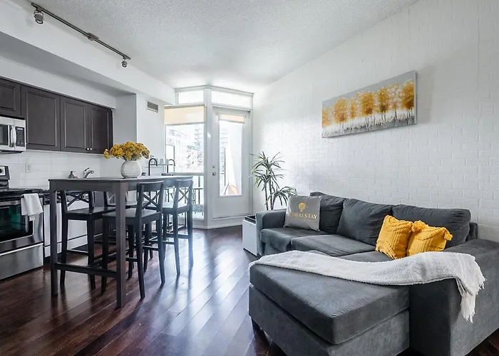 Das 60 m² große 1 Bedroom Plus Den Condo Garden View Fort York Downtown Toronto empfängt Reisende im Herzen von Toronto, in einer Entfernung von 25 Minuten zu Fuß von AWAY dem Alten Rathaus entfernt. Das Apartment liegt in 2 km Entfernung vom Parlamentsgebäude von Ontario und verfügt über einen Wellnessbereich und ein Hallenbad.